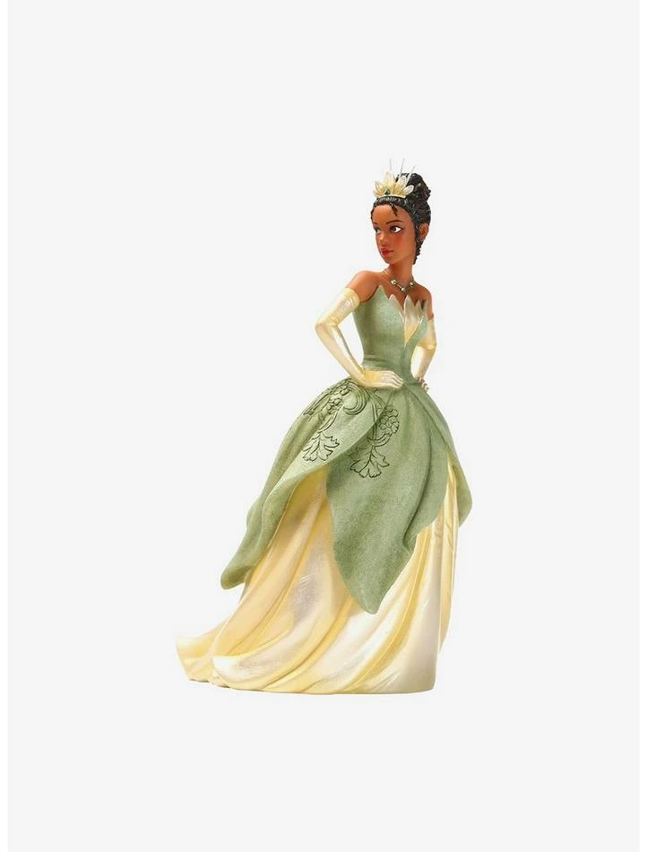 Tiana looks every inch a princess as she poses majestically for this Disney Couture de Force figurine. Inspired by her appearance in The Princess and the Frog, the fully-sculpted designer figure re-imagines her in haute couture. Exacting detail, faux jewels, and opalescent paints bring her to life.
