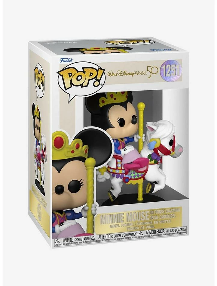 Celebrate 50 years of magic at the Walt Disney World Resort by commemorating one of its beloved theme park attractions! Pop! Minnie Mouse on Prince Charming Regal Carrousel is ready to take a spin through Fantasyland as she wears her royal princess outfit. Join Pop! Minnie for a whimsical ride as she gallops into your Disney Parks collection.