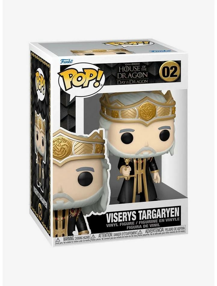 Welcome to the Dance of Dragons! The pursuit of legacy begins. If dragons make kings, Pop! King Viserys Targaryen has dragon blood running through his veins. Help Pop! King Viserys Targaryen defend the dynasty and secure the Targaryen legacy. Expand your Game of Thrones: House of the Dragon collection with Pop! King Viserys Targaryen.ย