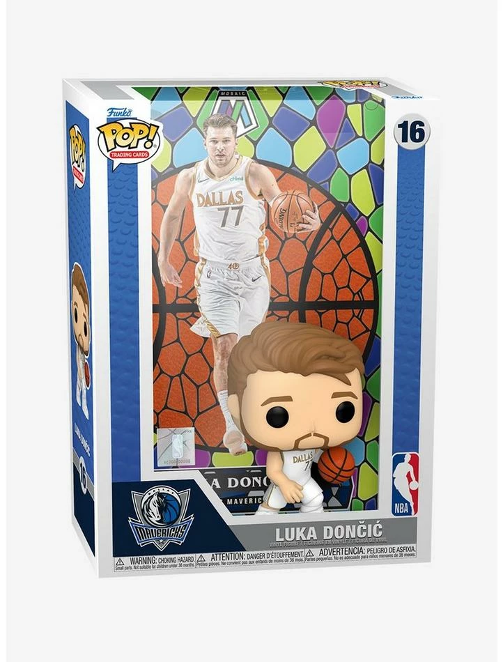 Commemorate an iconic sports trading card for your NBA collection with Pop! Trading Card Luka Doncic. The collectible features a Pop! Luka Doncic figure, wearing his white Dallas Mavericks uniform, which matches the included Panini Mosaic trading card art.Β Comes prepackaged in a protective case that can be hung on your wall!Β