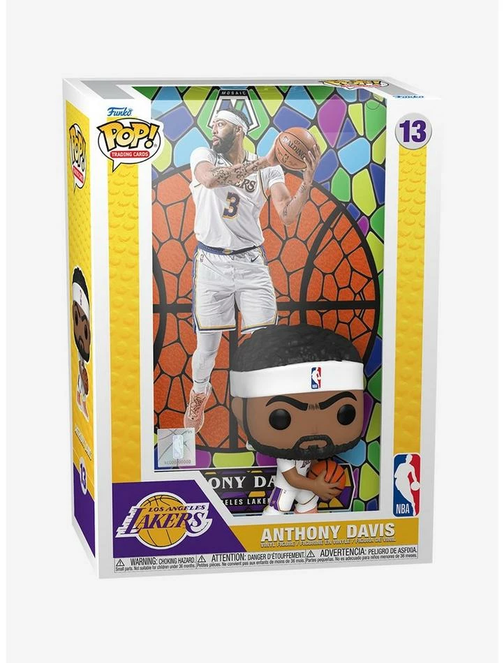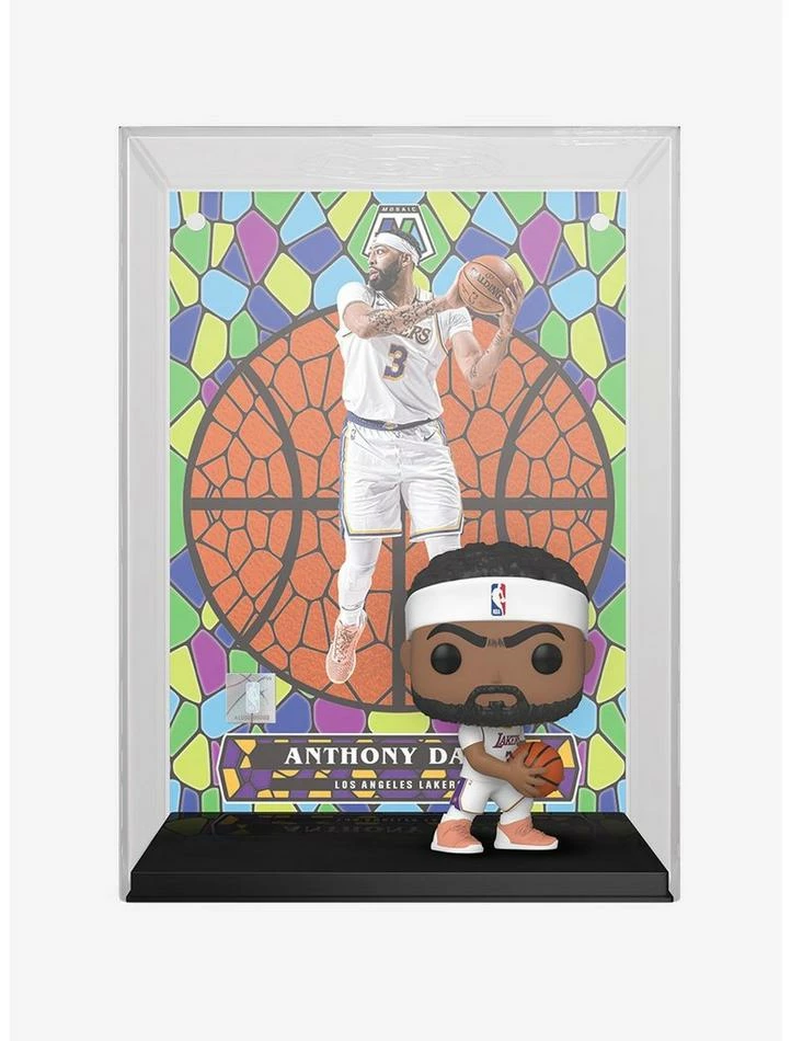 Commemorate an iconic sports trading card for your NBA collection with Pop! Trading Card Anthony Davis. The collectible features a Pop! Anthony Davis figure, wearing his white Los Angeles Lakers uniform, which matches the included Panini Mosaic trading card art. Comes prepackaged in a protective case that can be hung on your wall!ย