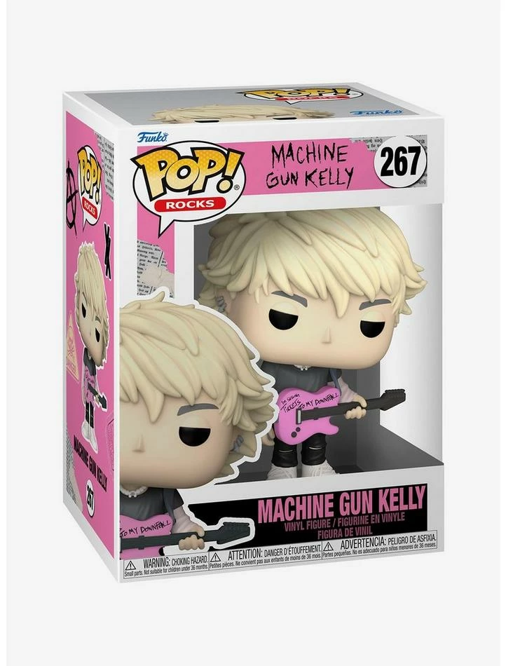 Get ready for the next big artist for your music collection! It’sβ― Pop! Machine Gun Kelly, ready to rock withβ―his pink guitarβ―in handβthe one made famous from the album cover Tickets to My Downfall. In fact, Pop! Machine Gun Kellyβs guitar is signed with the printed words “I’m selling tickets to my downfall.”Β