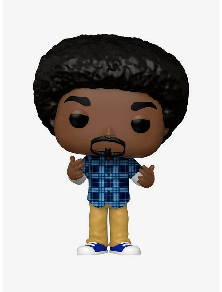 This legendary rapper is throwing it back to the early days of his career. Pop! Snoop Dogg wears a blue plaid shirt and khaki pants while rocking a natural hairstyle to keep things real in the world of rising rap music.