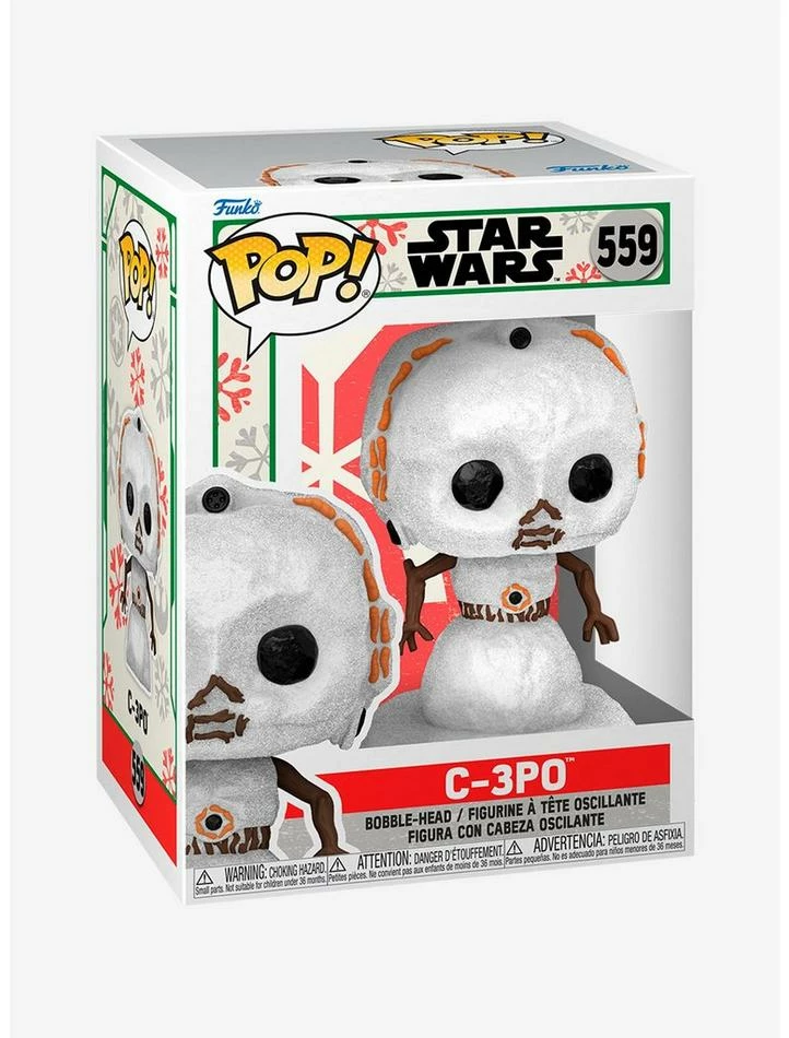 Spark intergalactic holiday fun with Pop! C-3PO as a snowman. Pop! C-3PO shimmers in white snowflakes, with carrots and twigs as finishing touches for the limbs and outer covering. Celebrate the seasons with a few stellar characters and expand yourย Star Warsย set.