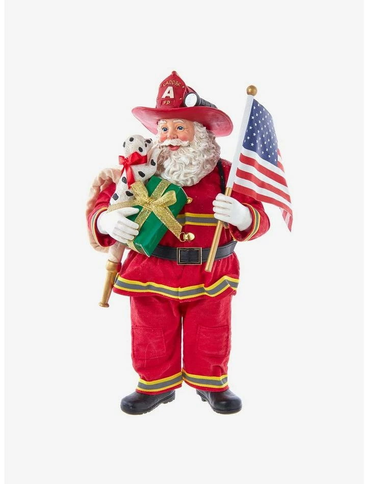 Best Pirce 🔔 Kurt Adler Fabriche Fireman Santa with American Flag Figure 😍