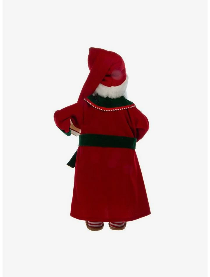 This 18-inch Kringle Klaus Santa with Coffee from Kurt Adler is a fun and festive addition to any holiday decor. Part of the Kringle Klaus collection, Santa is featured here wearing a red and green robe and reindeer slippers. I one hand he is holding a cup of coffee and in the other he holds a bag of “Take Time To Smell The Coffee” coffee.