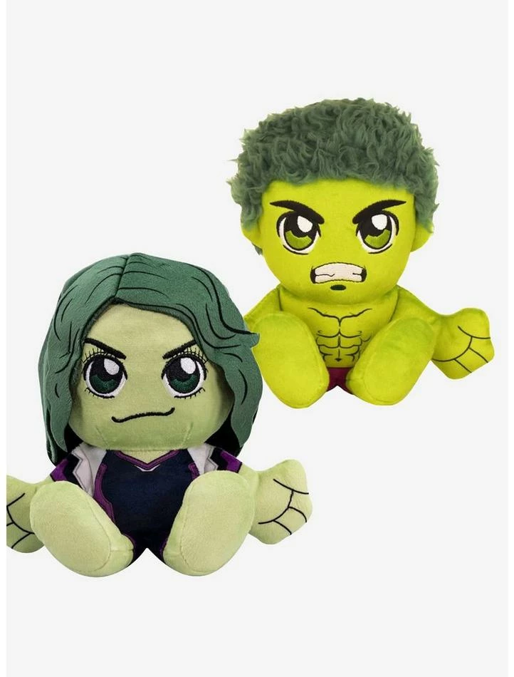 This She Hulk and Hulk bundle of plushies is great because they are sewn by hand with super-soft fabric and can sit anywhere you put them because of their bean bag bottom. Inspired by Japanese Chibi artwork, each Kuricha plush is uniquely designed to capture your favorite heroes.Β
