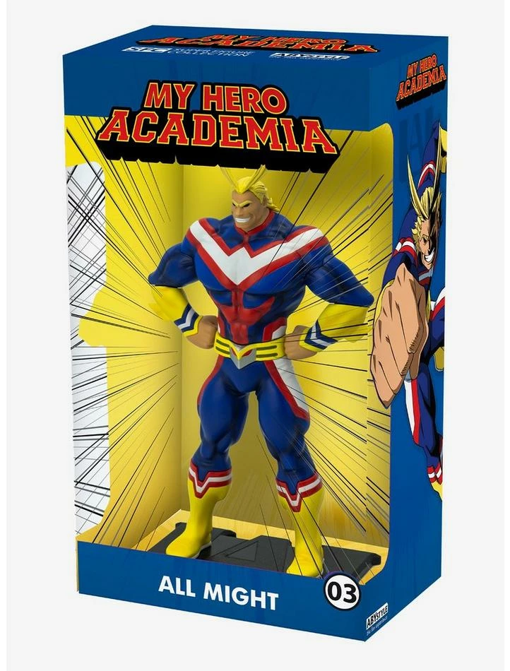This officially-licensed My Hero Academia figurine features Toshinori Yagi, also known as All-Might, in his tri-color suit. This non-articulated figurine from ABYstyle includes a removable base. Always ready to lend a hand, All Might would make a great addition to any My Hero Academia collection!