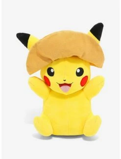 Your favorite PokΓ©mon is ready to join you for some fun in the sun! This plush depicts Pikachu wearing a fashionable summer hat, adorned with red ribbon and PokΓ© Ball detailing. The perfect beach day buddy!
