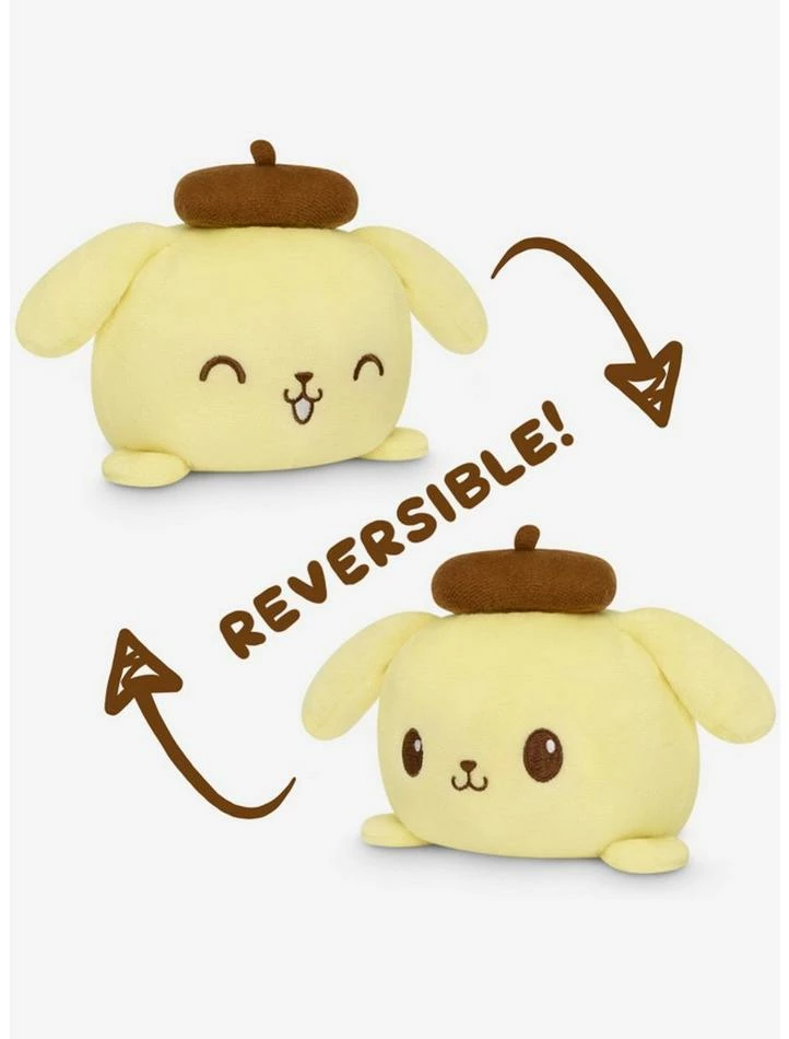 Pompompurin is here for all your moods! This reversible plush shows Pompompurin smiling and chilling.