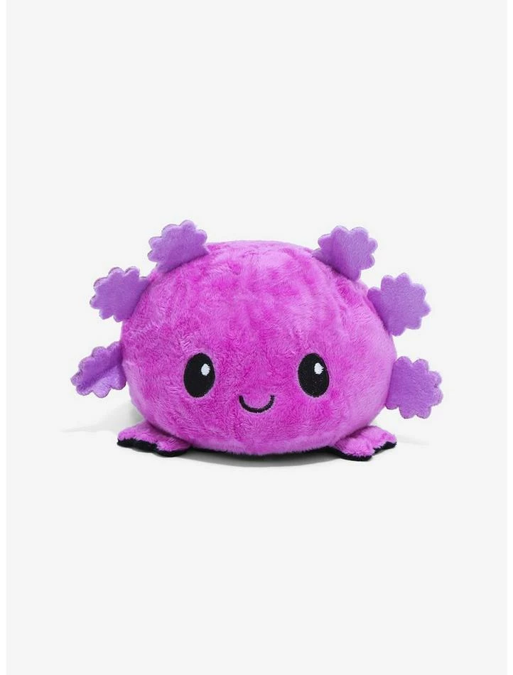 Show your mood without saying a word! This axolotl plush is reversible, so you get a happy purple axolotl and an angry black one!